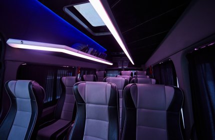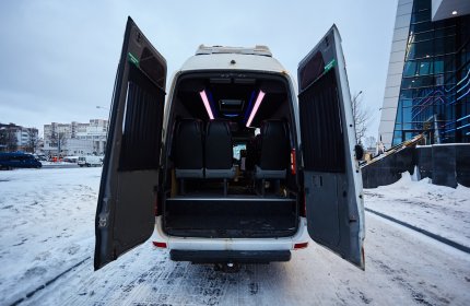 Комфортабельные сидения, WI-FI, DVD,кондиционер,отопитель салона. Минимальный заказ от 2 часов!!!